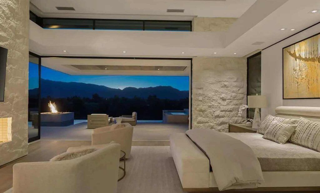 No massive suite with sitting areas and multiple walk-in closets but his primary bedroom offers enough space for comfort without excess.